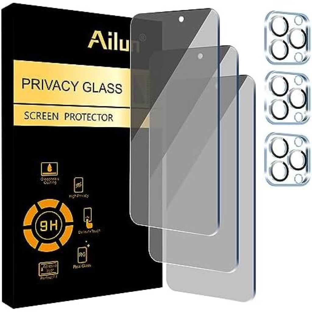 Ailun 3Pack Privacy Screen Protector for iPhone 15 Pro [6.1 inch]+3Pack Camera