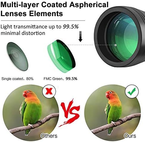 [Professional Powerful Binoculars]- Multilayer-coated aspherical lenses elements provide superior light transmission and minimal distortion, better image brightness, contrast and quality. The Bak-4 prism has a perfectly round exit pupil. Providing bright, clear and razor-sharp viewing.