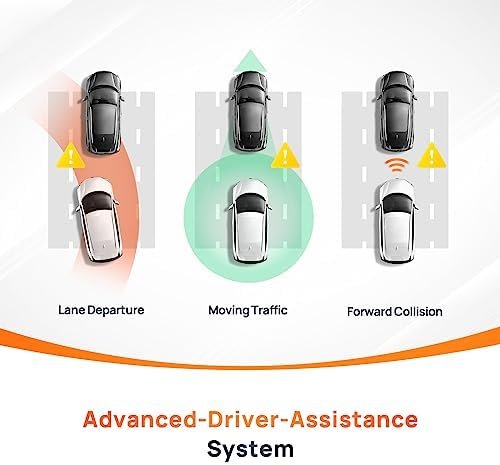 【ADAS System Featured Dash Cam】The Advanced Driving-Assistance System (ADAS) detects your surroundings and has real-time voice alerts to warn you of safety problems. The camera automatically detects lane markings and gives voice alerts when the car is drifting out of the lane. The dash cam also identifies the vehicle ahead and calculates the speed and distance of the car in front to prevent forward collisions while driving