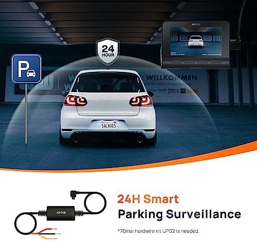 【24-Hour Parking Surveillance】Keep monitoring when you leave your car, the G-sensor automatically detects sudden shakes or collisions and starts recording, providing critical evidence for every important moment for 24h. In the event of an accident, you’ll receive a notification to check the event footage in the 70mai app. 70mai Hardwire Kit UP02 (B08R5SBKZR, not included) is required for parking mode