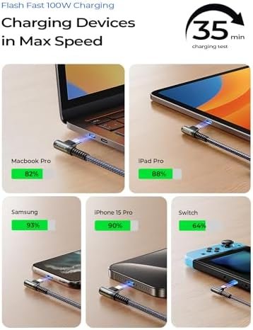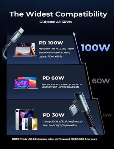 🔋”L” Connector Design, Never Bending & Breaking: This right angle usbc to usbc cable charge with an innovative 90 degrees “L” design. It’s more convenient and comfortable for playing games, watching videos, reading e-books while charging. A comfortable grip brings you an immersive operating experience, It completely solves the troubles of ordinary wires that are easy to block hand, unintentionally interrupted and the bending of the connector while using.