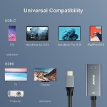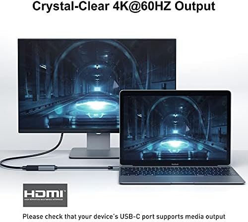 INCREDIBLE PERFORMANCE – The USB-C to HDMI adapter supports resolutions up to 3840*2160@60Hz including 3840*2160@30Hz, 2K@60Hz, 1080P, 720p, 1600×1200, 1280×1024 for high definition monitors or projectors; Plated USB-C connector resists corrosion and abrasion and improve the signal transmission performance; Molded strain relief increases cable durability