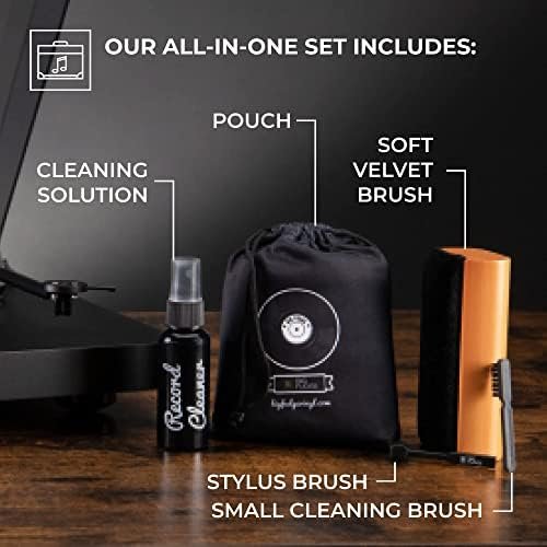 ALL-IN-ONE SOLUTION: Clean dust, dirt and fingerprints using the anti static velvet brush in combination with the cleaning spray. The included stylus brush will remove any particles off your record player’s needle. We thought of everything!