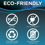 Design is PVC-free, features parts made of 100% recycled plastic, and requires no electricity or wasteful disposable cleaning products