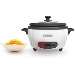 Dinner is easier with the BLACK+DECKER 6-Cup Electric Rice Cooker. Cooking takes just 20-30 minutes, and the unit keeps the delicious, fluffy rice ready to serve long after cooking is complete with an automatic “keep warm” function. Use it as a food steamer, too! The included steaming basket lets you prepare healthy meals with vegetables, fish, and more. Cleanup is a cinch with the dishwasher-safe, nonstick rice pot and tempered glass lid. Plus, you can use the electric cooker to prepare soups, stews, and even oatmeal! With a 1 to 6-cup capacity, this electric rice cooker is great for small and large servings. Dishwasher-Safe Parts – The rice pot and tempered glass lid can be cleaned in the dishwasher.