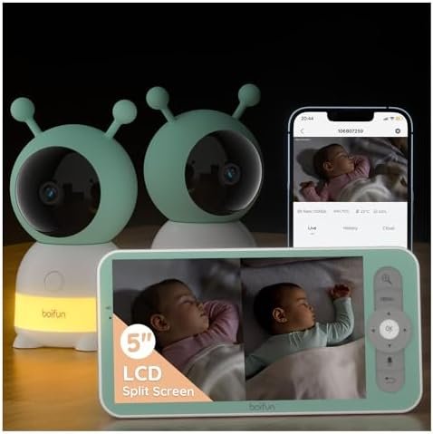 Be the first to review “BOIFUN 5″ Split-Screen Baby Monitor With 2 Cameras, 2K WiFi Baby Dual Cameras” Cancel reply