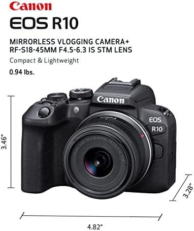 Canon EOS R10 RF-S18-45mm F4.5-6.3 is STM Lens Kit, Mirrorless Vlogging Camera
