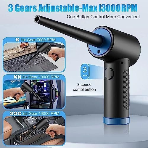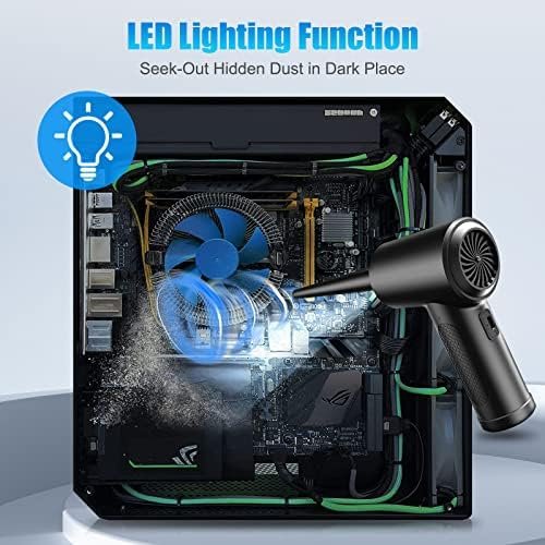 【LED Lights & Cordless Design】LED lights automatically illuminate when turned on electric air duster, allowing you to easily clean up dark corners, bringing great convenience to your cleaning. With its ergonomic shape and cordless design, it’s small, lightweight, comfortable to hold, and easy to carry around.