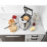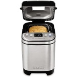 Everybody loves homemade bread, but not everybody has time to make it. Let Cuisinart do it for you! our versatile and compact automatic bread maker offers a variety of crust colors and loaf sizes, as well as 12 preprogrammed menu options. Foolproof recipes include everything from gluten-free and artisan breads to jams and sauces. With a convenient 13-hour delay-start timer, that wonderful aroma of just-baked bread can be waiting for you when you wake up. Features: Compact vertical bread maker with stainless steel exterior|12 preprogrammed menu options – fully automatic easy to use|3 crust shades – light medium or dark|Bakes up to a 2-pound loaf|Viewing window to monitor the process|Removable kneading paddle and bread pan|Interior light to check bread as it bakes|Easy-to-read LED display|Bake-Only option|13-hour delay start – fresh bread anytime!|Power failure backup|BPA-free|Limited 3-Year warranty.