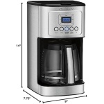 14-Cup Glass Carafe: Indulge in generous servings of coffee with a sleek glass carafe featuring a decorative stainless-steel handle and matching body, creating a stylish addition to complement your kitchen appliances