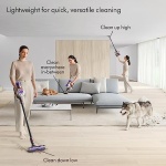 The Dyson V8 cordless vacuum cleaner is engineered with the power, versatility, tools and run time to clean homes with pets. Dyson’s de-tangling Motorbar™ cleaner head deep cleans carpets and hard floors with hair removal vanes that clear long hair and pet hair from the brush bar. The innovative Hair screw tool with a conical brush bar is perfect for cleaning upholstery and pet beds. The Dyson V8 has advanced, whole-machine filtration that captures pet dander and fine dust, expelling cleaner air. Thanks to the cordless format, it also transforms into a handheld vacuum with one click so you can clean up high, down low and everywhere in-between. Comes with a 2-year warranty and lifetime Dyson support.
