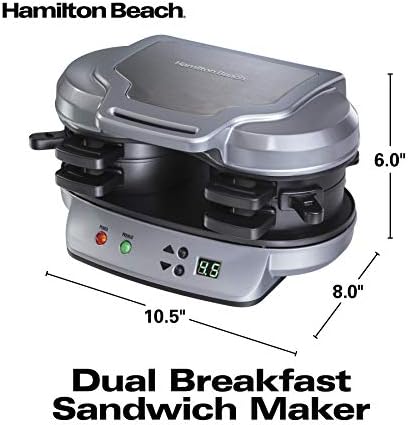 Forget the fast food drive-through. With the Hamilton Beach Breakfast Sandwich Maker, you can enjoy a hot, homemade breakfast sandwich in under 5 minutes. Simply place the ingredients inside, build the base of your sandwich in the bottom layer, place the egg on the cooking plate and close the lid. Slide the cooking plate out and your sandwich assembles itself. Open the lid and your hot breakfast sandwich is ready to eat. The included recipe book provides a variety of breakfast sandwich options, from the traditional egg, ham and cheese to the unique cheddar, apple, bacon and egg croissant sandwich.