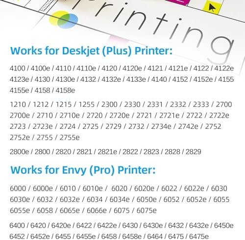 Compatible Printer: For DeskJet 2734e, 1255, 2710e, 2720e, 2721e, 2722, 2722e, 2723e, 2724, 2725, 2732, 2742e, 2752e, 2755, 2755e, 2800, 2800e, 4110e, 4120e, 4121e, 4122e, 4123e, 4130e, 4132e, 4133e, 4152e, 4155e, 4158e; For DeskJet Plus 4122, 4132, 4155 Printer (other models are shown in the image).
