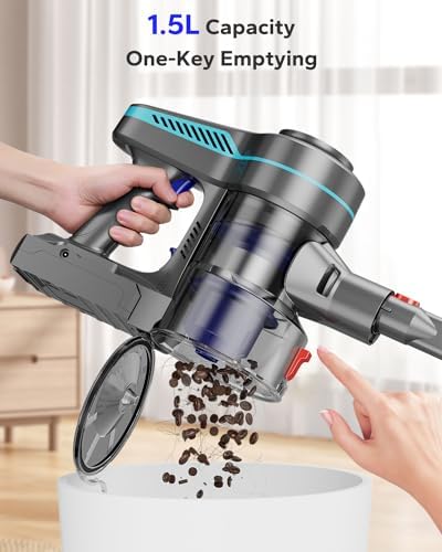 ✅[1.5L XL DUST CUP & V-SHAPED FLOOR BRUSH] Large dust cup easily holds more dust, one-touch emptying avoids contact with dust. New V-shaped anti-tangling brush effectively solves the problem of tangling, which is common with traditional vacuum cleaners.