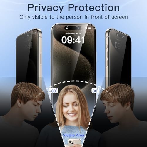 JETech Privacy Screen Protector for iPhone 15 Pro Max 6.7-Inch with Camera Lens