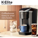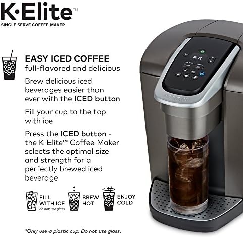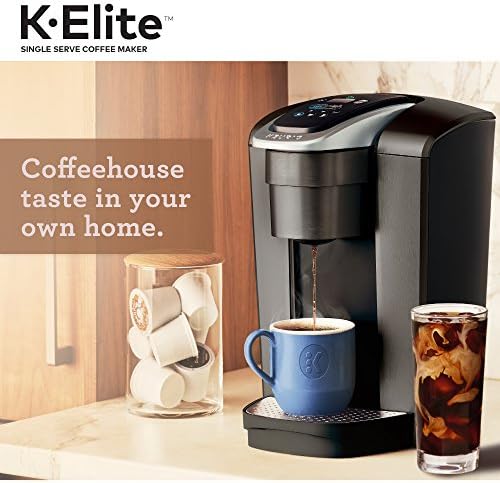 The Keurig K-Elite single serve brewer blends a premium Brushed Slate finish and programmable features to deliver both modern design and the ultimate in beverage customization. With a striking brushed finish and metal details, it’s a stylish addition to any kitchen. The Keurig K-Elite single serve coffee maker features Strong Brew for when you want to brew a bolder cup of coffee, and an Iced button to brew hot over ice for a refreshing, full-flavored iced coffee. It features five brew sizes, so you can brew your favorite coffee, tea, hot cocoa, or iced beverage at the touch of a button. Choose from hundreds of delicious varieties of K-Cup pods, or brew your own ground coffee using the Universal My K-Cup Reusable Coffee Filter (sold separately). The K-Elite brewer offers programmable features like auto on and temperature control, as well as providing hot water on demand for instant soups and oatmeal, and the large 75oz removable water reservoir lets you brew 8 cups between refills.