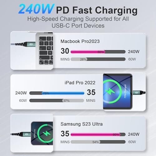 ☑️【Fast Charging Cord】This usb c charger cable supports most of the fast charging protocols on the market. It can charge all USB-C phones, tablets, laptops, even the latest MacBook Pro/Air, iPad Pro at maximum speed.