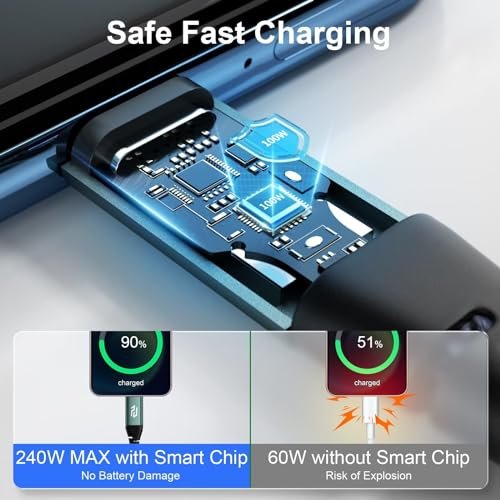☑️【Unmatched Safety and Compatibility】Our usb c charger cable is designed with your safety in mind. The certified smart chip regulates the current and voltage, it intelligently adjusts the input power to prevent overcharging and overheating, maximizing your battery life.