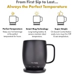 SMART MUG TECHNOLOGY – Long-lasting battery & sensors maintain your ideal temperature. LED lights display battery life & real-time temperature. Includes Auto-off technology & Charging Coaster.