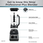 The Ninja Professional Plus Blender with Auto-iQ features a new modern design and a more powerful motor than Ninja’s original Professional Blender.* Ninja Total Crushing Blades give you perfectly crushed ice for your smoothies, frozen drinks, and ice cream. The 72 oz.** Total Crushing Pitcher is great for making large batches for the whole family with 1400 peak watts of professional power. Auto-iQ Technology provides preset programs that do the work for you, no guesswork required. *Versus BL610, based on operating wattage **64 oz. max liquid capacity.