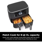 SMART FINISH & MATCH COOK: DualZone Technology allows you to choose between the Smart Finish feature, which unlocks cooking 2 foods 2 ways that finish at the same time, and the and a Match Cook button to easily copy settings across zones for full 8-qt capacity.