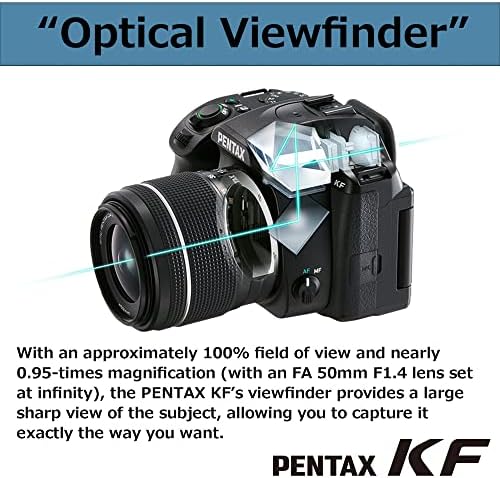 The PENTAX KF offers outstanding imaging performance in a compact body. Featuring dustproof, weather-resistant construction and dependable cold-proof performance down to temperatures as low as -10°C, it’s optimized for all types of outdoor photography. It incorporates a host of advanced functions and user-friendly features including a pentaprism-type optical viewfinder with a nearly 100% field of view and 0.95-times magnification and an in-body shake-reduction system with a 4.5-shutter-step compensation. Built with the photographer in mind, the grip, control buttons on the back panel and mode dials are contoured to offer optimum comfort and operability. The high-definition vari-angle LCD monitor makes it easier to compose images in a wide variety of applications, while the unique Night Vision Red Light LCD function minimizes eye strain and fatigue for nightscape and astrophotography.
