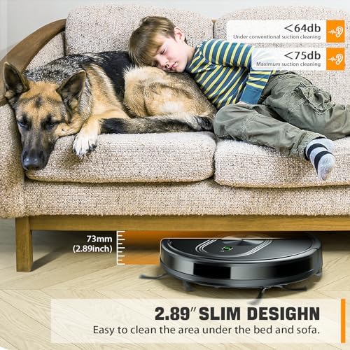 ✅【Intelligent Obstacle Avoidance Upgraded Again】 The robot vcauum has advanced 3D precise obstacle avoidance function, and a full set of infrared sensors can intelligently identify and avoid white walls, stairs and obstacles. The robot vacuum cleaner can climb up to 15° and can easily cross door thresholds or carpets. 2.89” slim design helps the robot vacuum cleaner to reach every corner of a house or narrow space, clean leftover dirty areas, and keep your house neat.