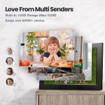 [OVER 30,000 PHOTOS STORED]: This frame offers you a huge storage capacity with built-in 16GB memory (around 30,000 photos of 300KB/pc). It also supports the SD card and micro USB drive connectivity to enable you to read the files and export, backup the received photos and videos for better album management. Supports a max. 64GB micro SD card (Not Included).