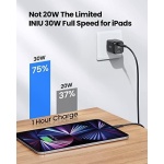 ✅【Charge Tablets 2X Faster】INIU ipad charger will quickly charge your iPad Pro at 75% in an hour with a PD 30W output, way faster than ever. With usb c adapter charging blocks, you can Continue enjoying fun games, favorite movies, and e-books in a couple of minutes.