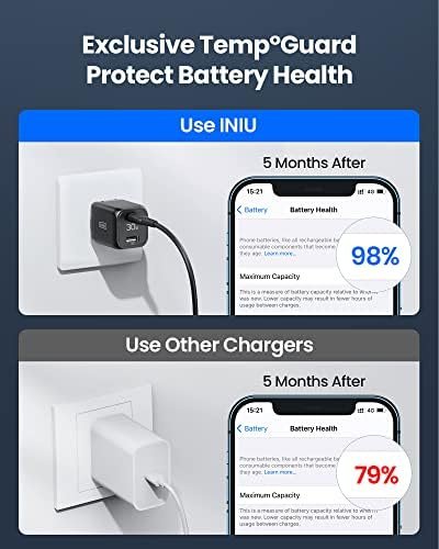 ✅【Max out iPhone 13 Pro Max up to 80% in 1 hour】Superior to the old-fashioned 20W, INIU usbc charger iphone gives a 27W-peak-speed charge to your iPhone 13 Pro Max, saving you 30 mins. Wake up and find a dead phone in the morning? Let the INIU phone charger bring it back to life while you take a shower.