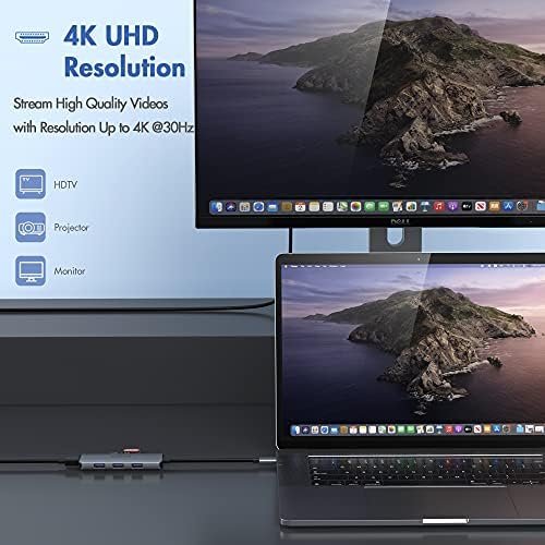 4K HDMI Adapter for MacBook Pro: This USB C to HDMI Multiport Adapter can mirror or extend your screen with the HDMI port, directly stream 4K UHD or Full HD 1080p video to HDTV, can reach to max resolution of HDMI 4K@( 3840x2160P)30Hz